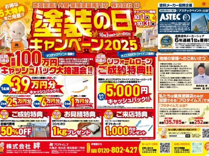 香川県高松市を中心に地域密着〝プロタイムズ高松国道11号店〟です! 🎉今年も開催!プロタイムズ丸亀店「塗装の日キャンペーン」✨ 毎年大好評をいただいている 「塗装の日キャンペーン」 を、今年も…