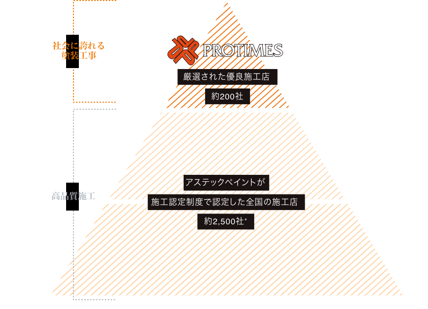 アステックペイントが施工方法などの技術的な指導を実施し「施工品質」と「品質管理」の両面で安心して消費者へ塗装をご提供できる施工店のみが取り扱いできる特別な塗料です。