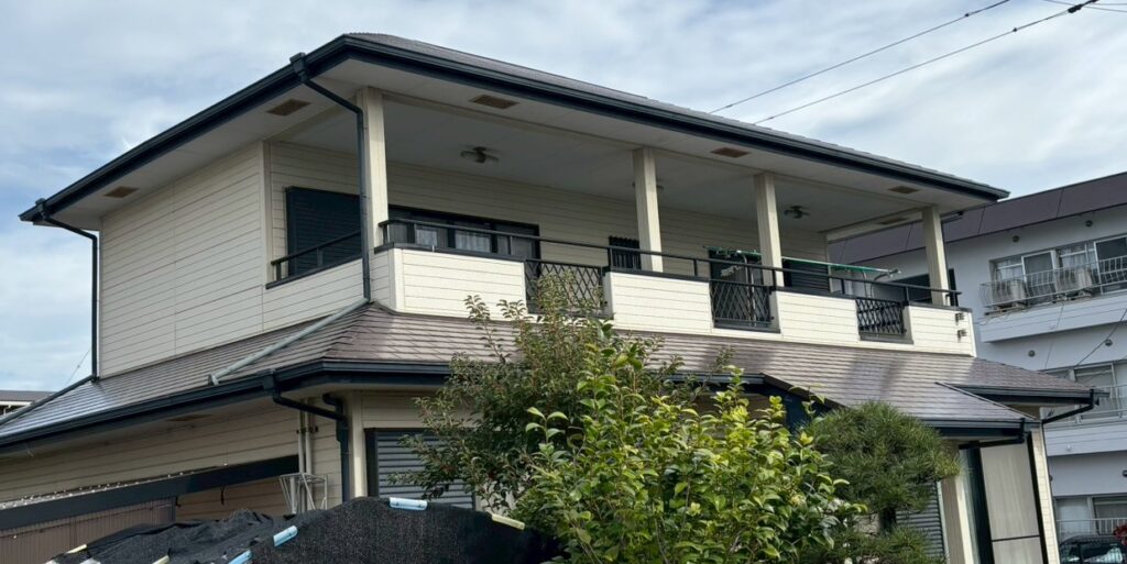 今回のお住まいでは、屋根の色あせとベランダ防水層の劣化が見られましたので、屋根塗装とベランダ防水工事を同時に施工させていただきました。