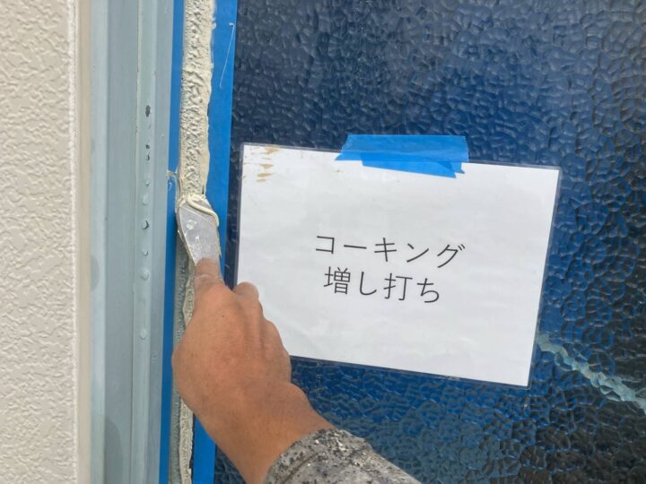サッシ周りはテープ養生を行い増し打ちしていきます。